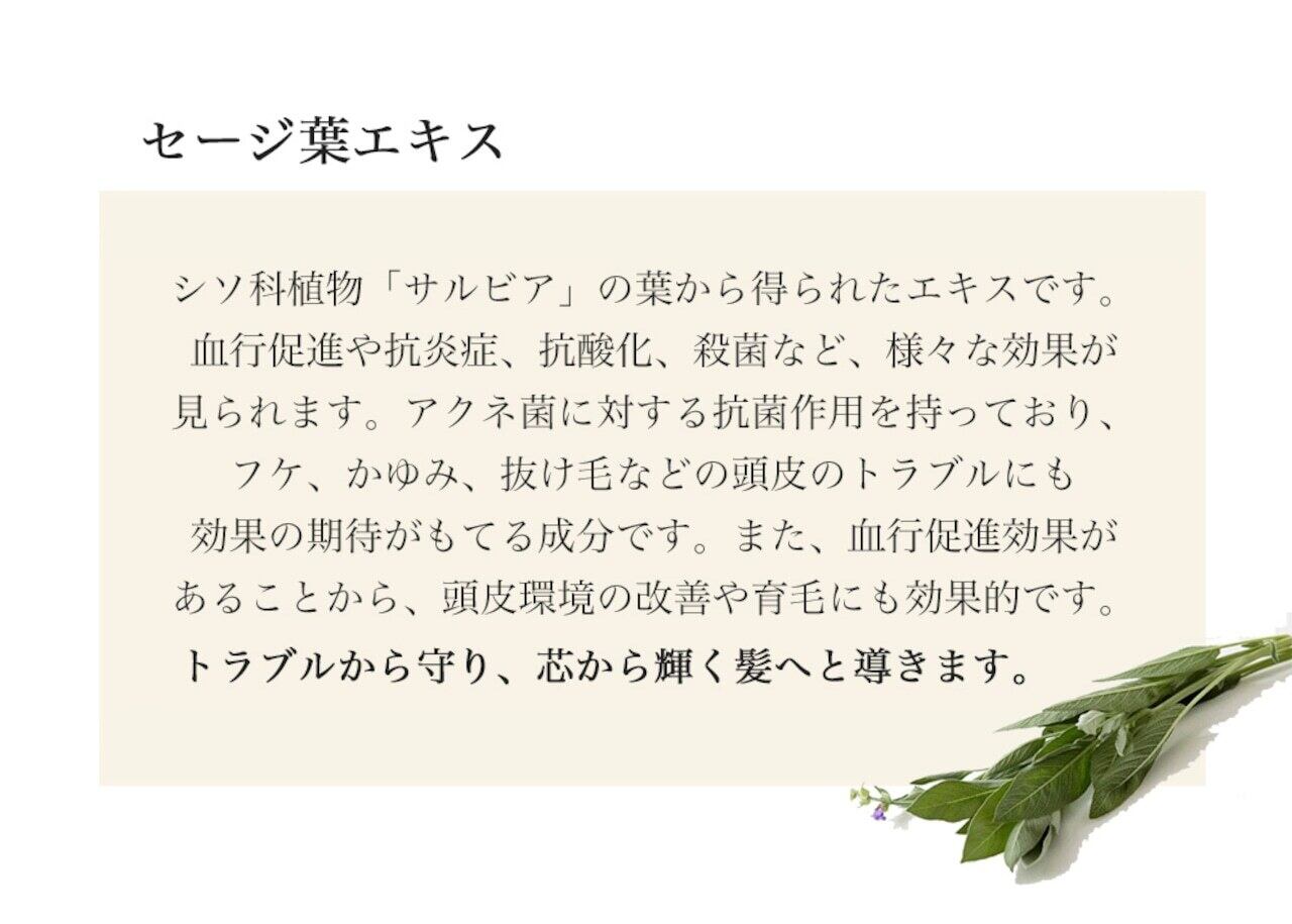 10種類の植物エキスで頭皮、毛髪に潤いを与え、ハリ・コシのある艶やかな髪にします。